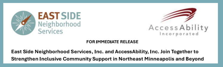 Minneapolis, MN - April 17, 2026 — East Side Neighborhood Services (ESNS) and AccessAbility (AAI) have agreed to pursue a partnership that positions the combined organization for long-term financial sustainability and programmatic growth.